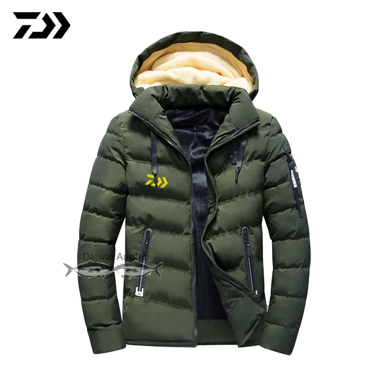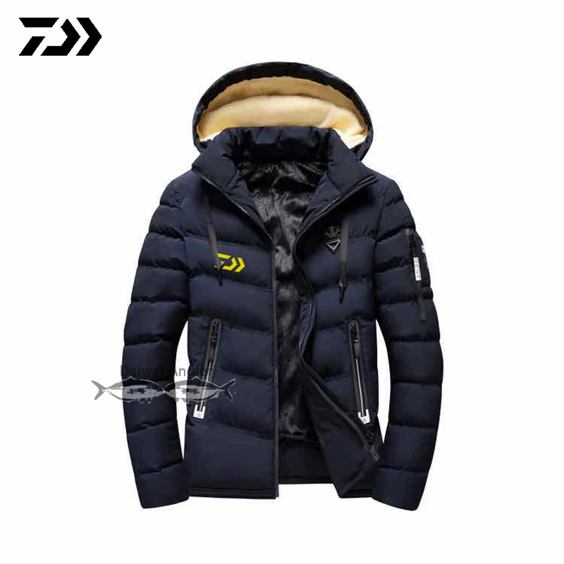 Daiwa Fishing Jacket Winter Fishing Suit Hooded Solid Cotton Thermal Zipper Fishing Shirt Men Outdo