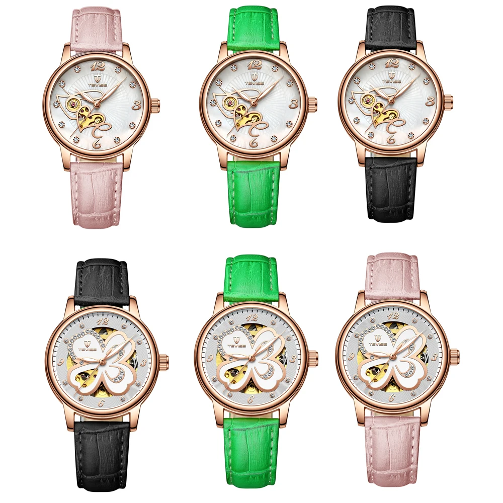 HIGH QUALITY TEVISE Hollow Flower Women Automatic Skeleton Mechanical Watches Rose Gold Ladies Clock Wristwatch
