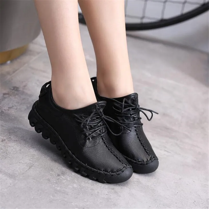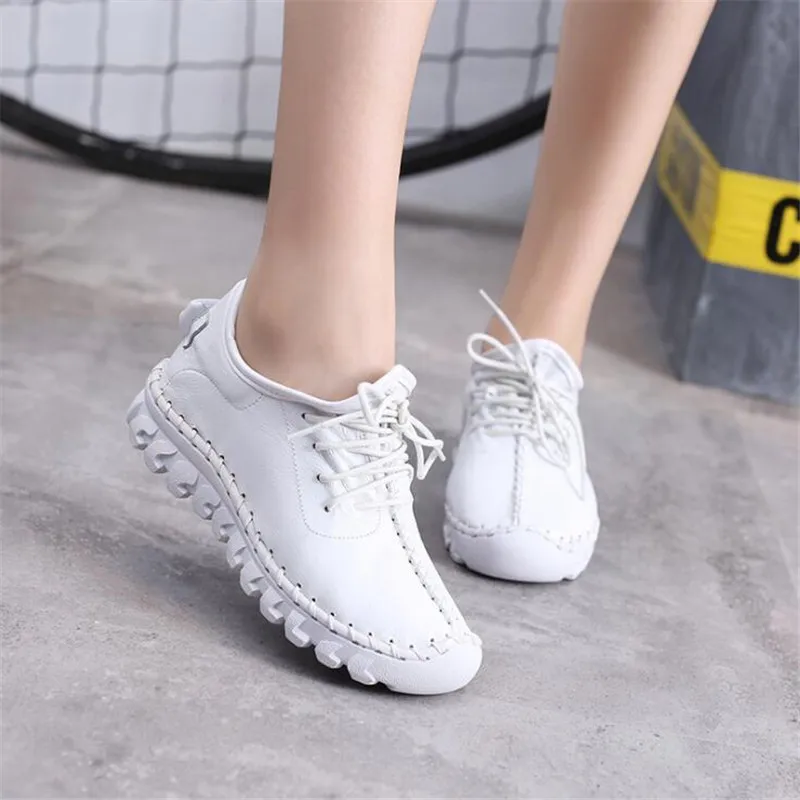 2019 New Handmade Genuine Leather Women Shoes Soft White Sneakers Casual Shoes For Woman Flat Loafe