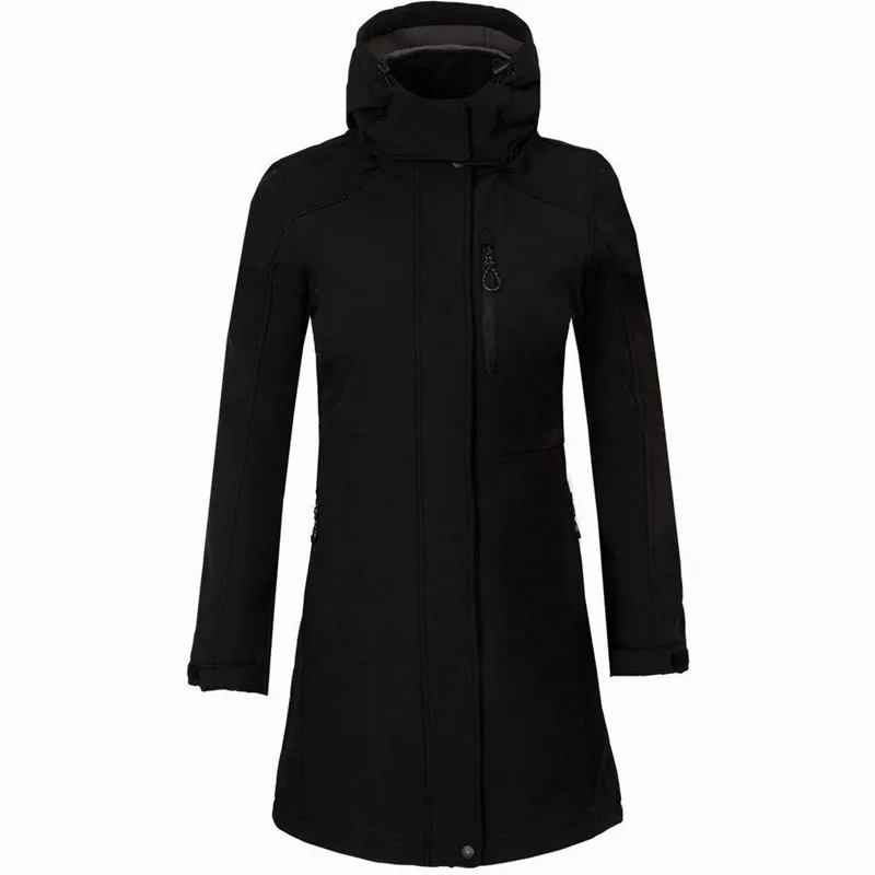 Best Women long Windbreaker Autumn Winter outdoor Fleece warm hooded jacket windproof waterproof camping